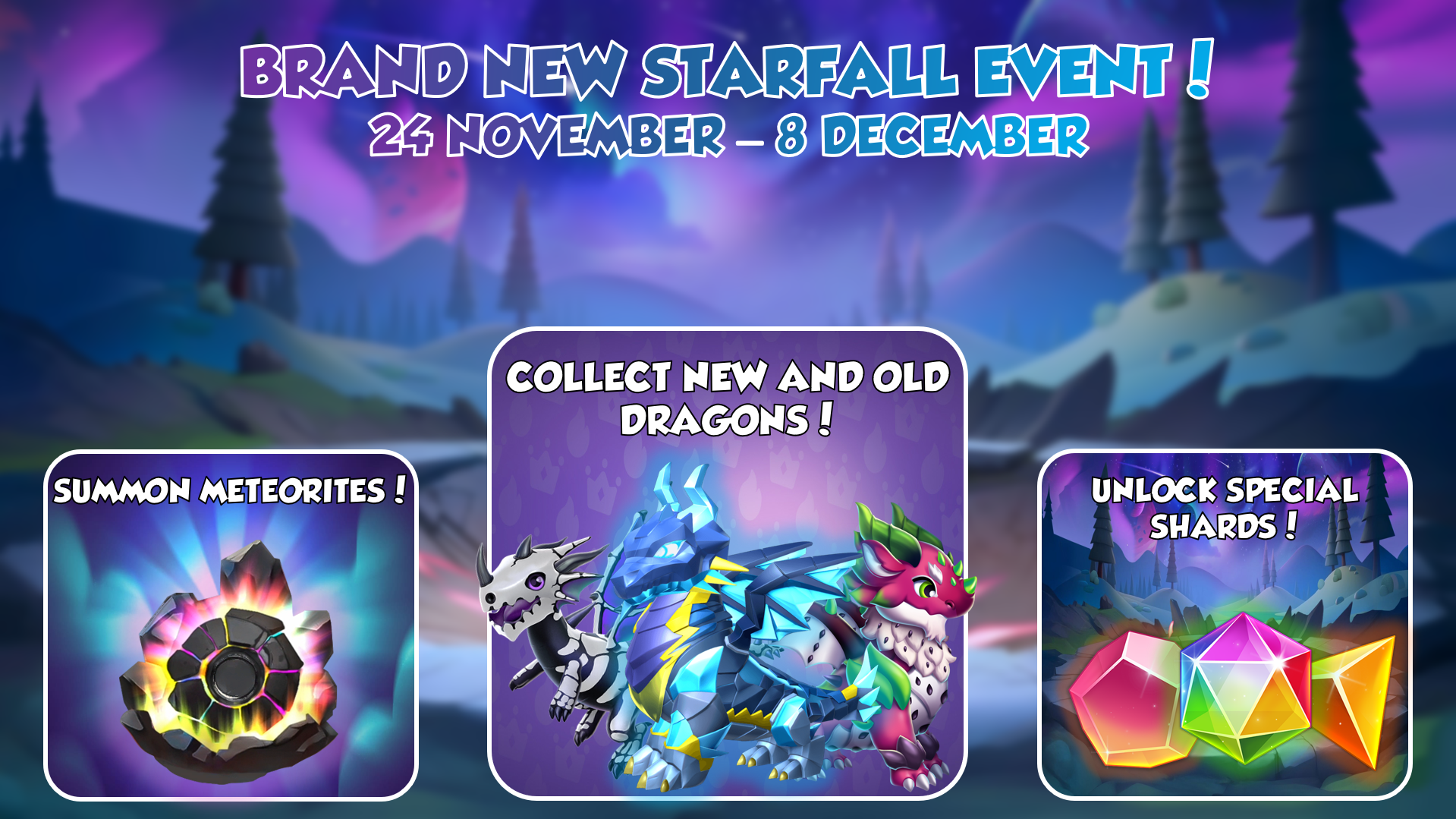 - Brand-new Starfall Event with the new Citala, Sweetshell, Wizard, and Sandcastle Dragons as well as 6 other Dragons (24 Nov - 8 Dec)